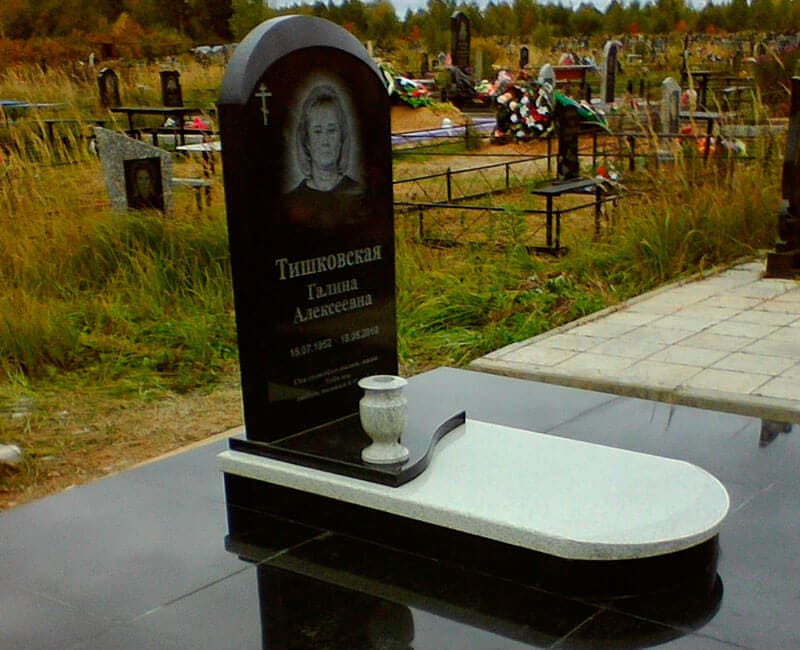 Стандартный комплект памятника включает в себя стелу, подставку и цветник. Плитка приобретается по желанию заказчика и за отдельную плату. Вместо цветника можно установить надгробную плиту.